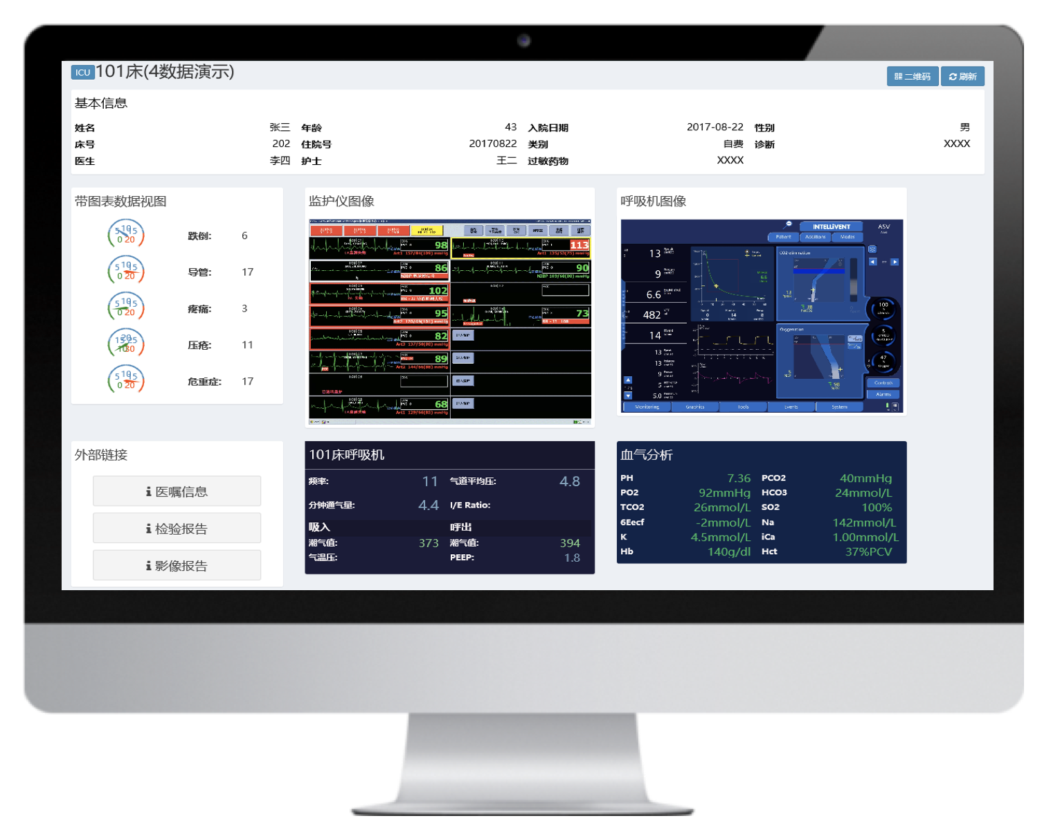 多臺不同品牌的有創(chuàng)呼吸機聯(lián)網(wǎng),并通過大屏實時集中呈現(xiàn)治療預設參數(shù)和監(jiān)測參數(shù),實現(xiàn)多臺集中監(jiān)測、集中管理和數(shù)據(jù)存儲。